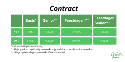 - Op contract: salarissen worden altijd op de 15e van de nieuwe maand uitbetaald. Als je op contract werkt kun je ook doorgroeien naar senior, waarbij je meer verantwoordelijkheden en ook meer salaris krijgt. Vraag de planners naar de mogelijkheden.