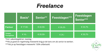 - Op factuur: Ben je een freelancer met KVK- en BTW-nummer? Dan kun je via factuur werken, conform de eisen van de belastingdienst. Correcte facturen betalen wij binnen 14 dagen uit.